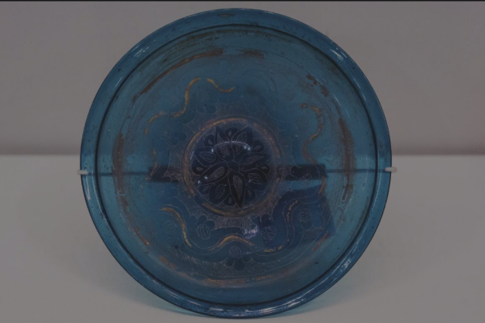 图10 唐 八瓣团花描金蓝琉璃盘