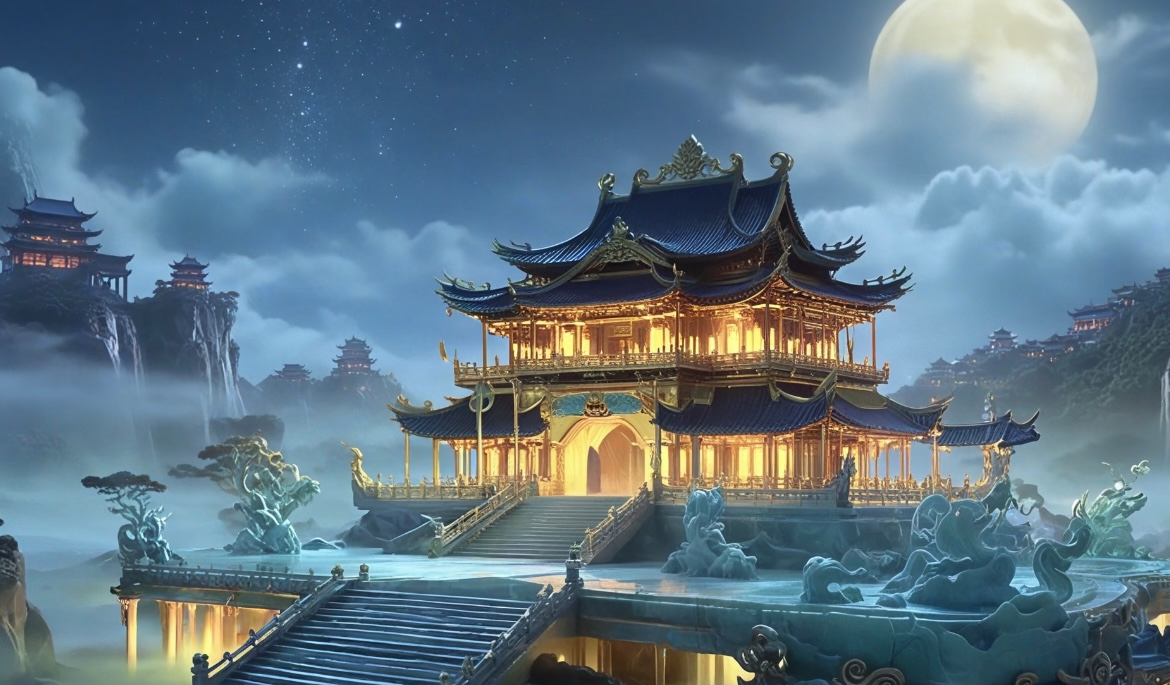 溜走(月光下老人提着酒壶逃窜,两缕狐魂追着桃花瓣嬉闹,惊起满山萤火)