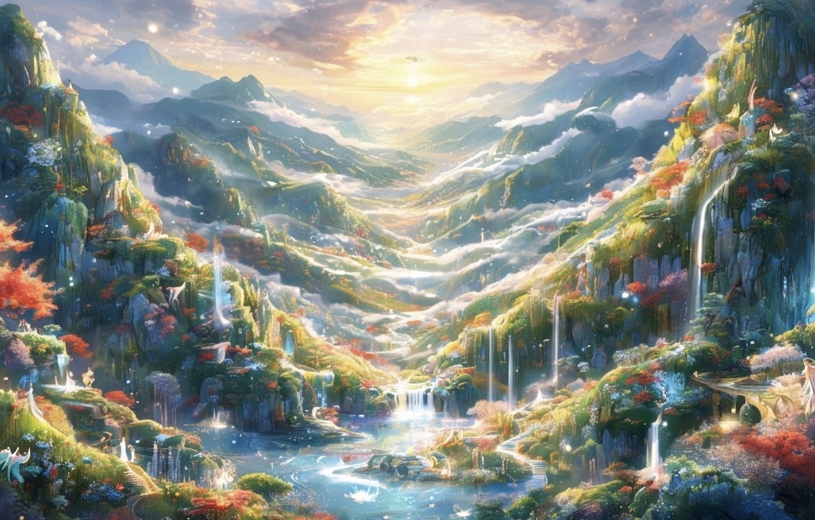 (天际划过四道流光——剑影、狐火、龙鳞与星芒交织)