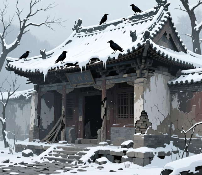 场景:一年半后,忘忧茶馆前堂,雪夜