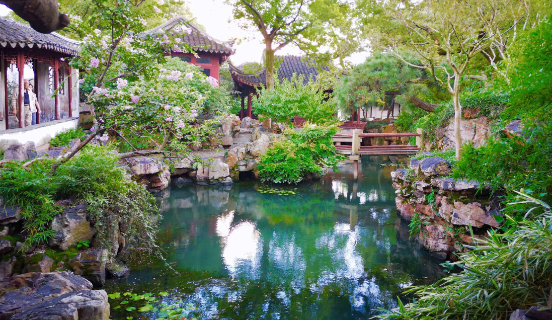 ⑰ 可园位于苏州城南三元坊,与沧浪亭隔溪相望,是一座始建于清代的古典园林。可园占地约五亩,西部以住宅厅堂为主,建筑密集,质朴秀美。东部以水池为中心,布局疏朗 槛(jiàn)曲廊回。可园在北宋时为沧浪亭的一部分,南宋时一度成为抗金名将韩世忠的家宅,到了清雍正年间,私宅变为公共园林,时任江苏巡抚的尹继善在此兴修园林“近山林”。后来取孔子所言“无可无不可”之意,改名为可园,透露出几分随遇而安的意味。