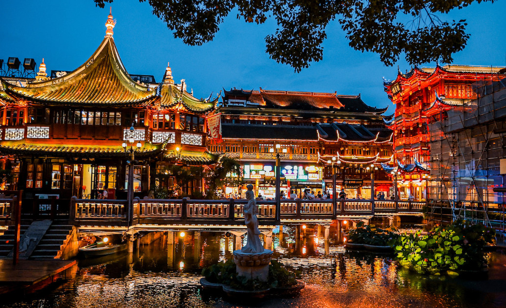 ⑭ 豫园占地30余亩,分成东,中,西以及内园等部分。有三穗堂、快楼、得月楼、积玉水廊等48处建筑景观,以设计精巧,清幽秀丽见长。豫园的胜景之一,便是张南垣(yuán)的叠石杰作。这座假山通体以形态各异的武康黄石数千吨叠成。层峦叠嶂,清泉飞瀑,如见万山重重,气势非凡。享有着“江南假山之冠”的美誉,可谓名不虚传。豫园的镇园之宝是玉华堂前的一块奇石,称玉玲珑。它高三米,重约三吨,石上有72个孔洞。