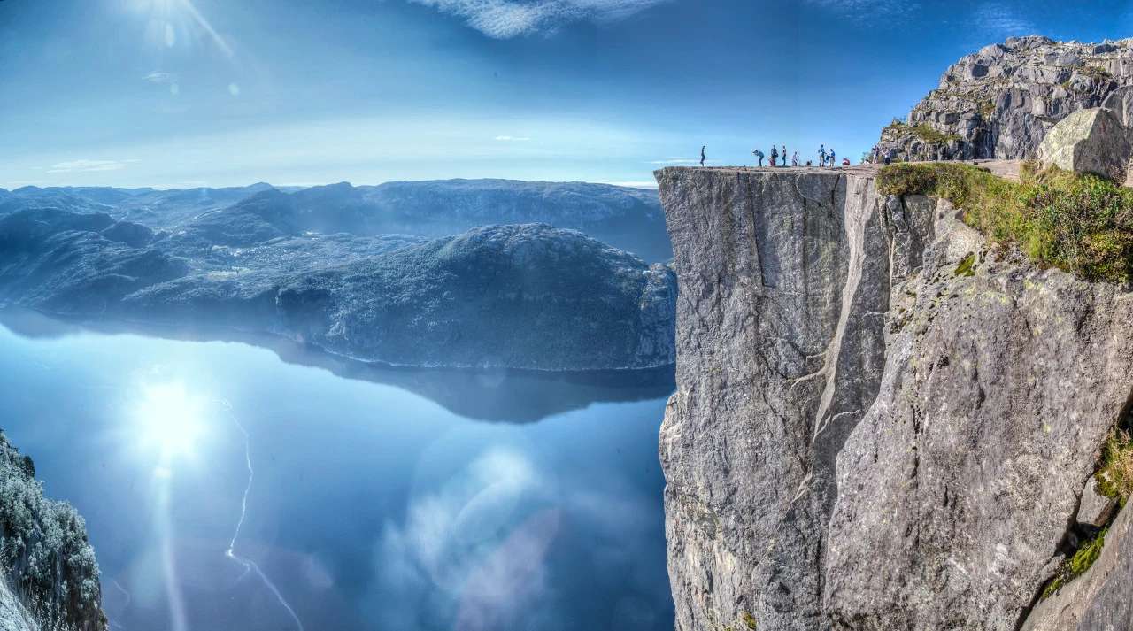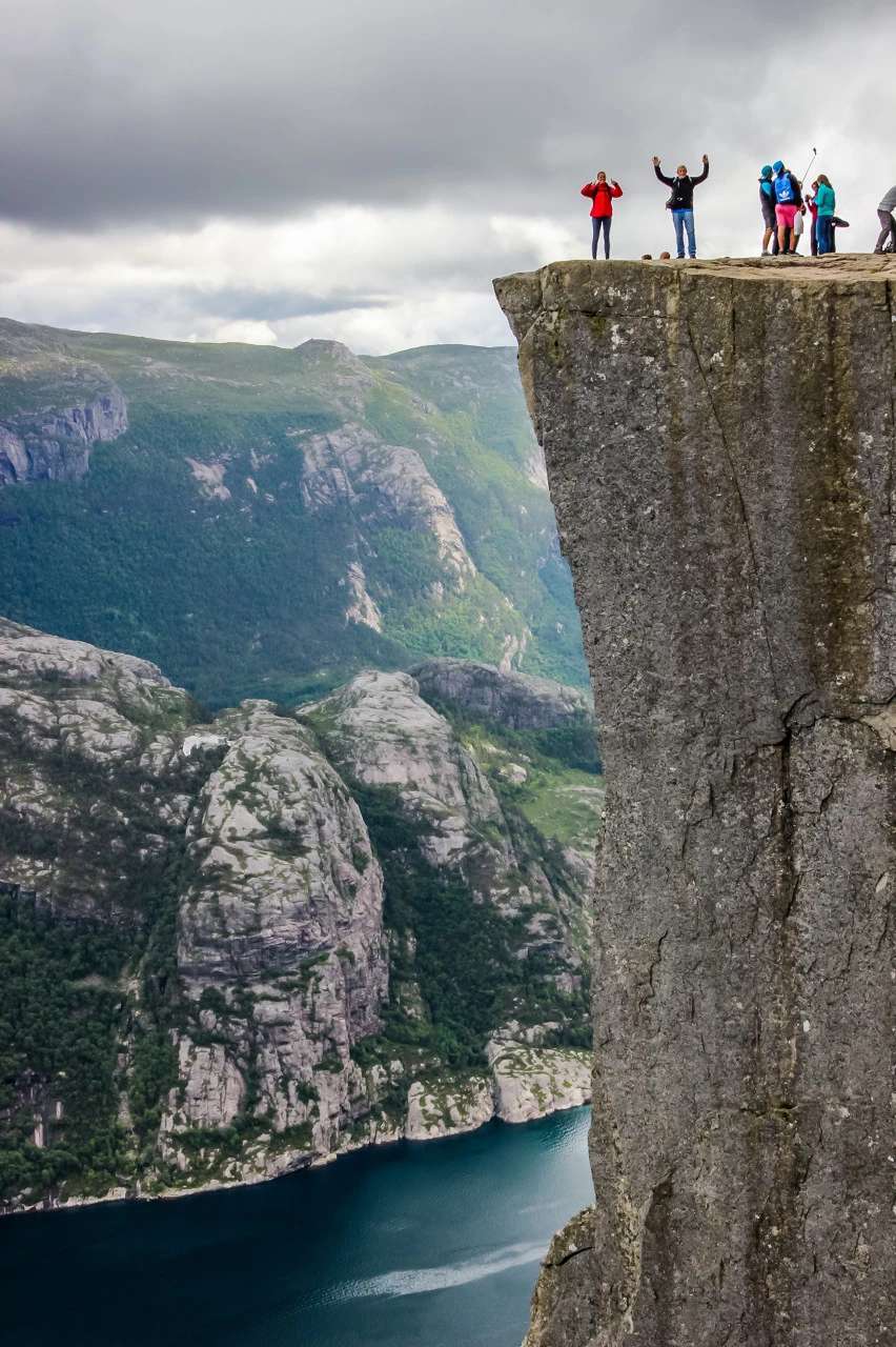 604米高的布道石是一块直插入峡湾的悬崖断壁,它也是勇敢者的标志。