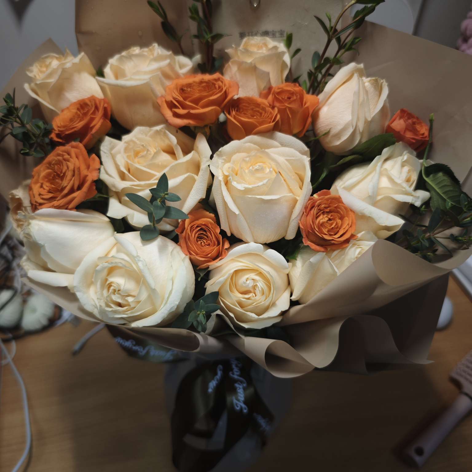 橘:以前下了班,会去那买一束,不过不止香槟,还有别的。带回家用剪刀修枝,然后插在水桶里醒花。醒过花,放进花瓶里摆起来,再加一点盐,就可以让它们多延几天的花期,不过再多也就个礼拜,会全都凋谢。
