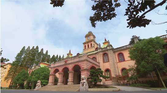但与西方建筑不同的是,当时的西式建筑多用红砖砌外墙,而该建筑的墙体却用青砖砌筑,内部仍是砖木结构,外面再加以粉饰。在绿树、芳草的映衬下,显得格外庄重、典雅。