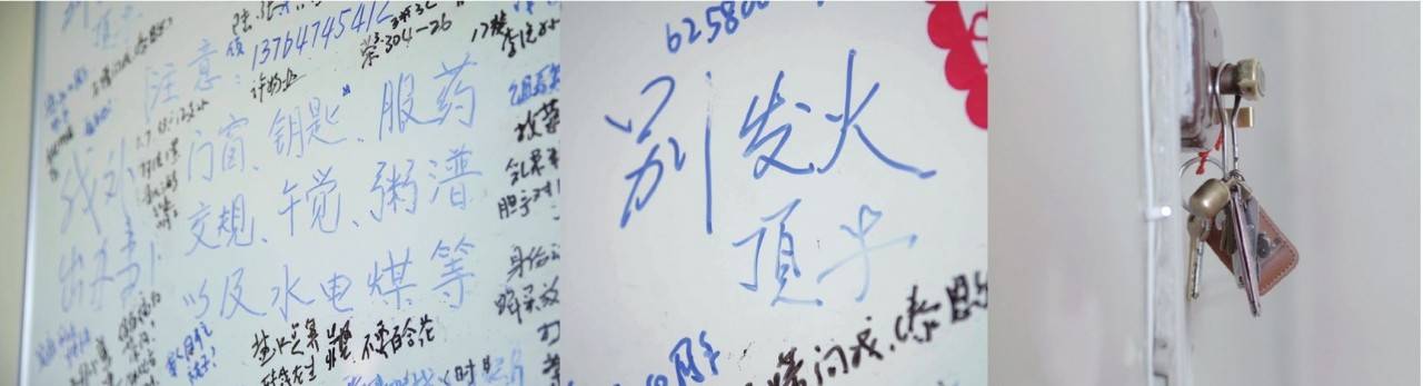 老巢:这个板子是为了提醒她用的,自从她生病,这个板子也写了两三年了。她以前还比较清醒的时候,我会帮她写好,比如“不要外出”。因为就算你跟她说了,她也不记得。