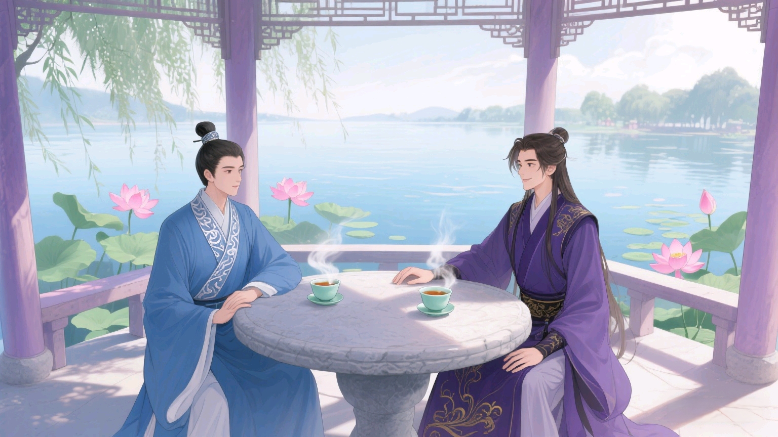 苏砚之:(从外厅走进湖心亭,眉宇间带着倦意)淮越,让你久等了。