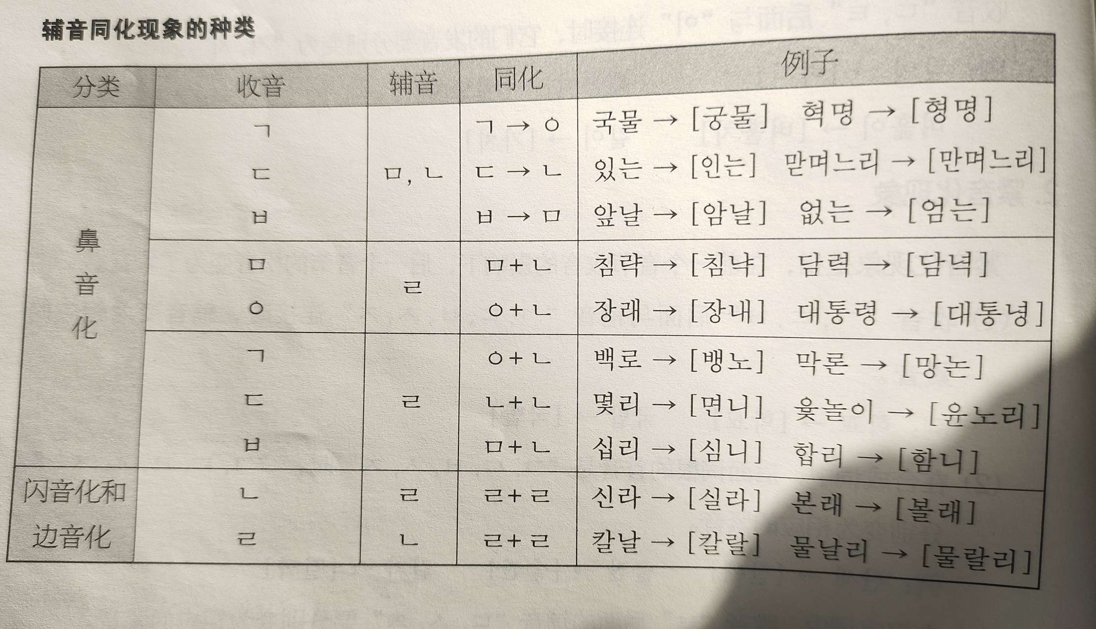 辅音同化现象是指,收音与后面的辅音连接时,原本两个不同或不相似的音由于相互影响而变为相同或相似的音。