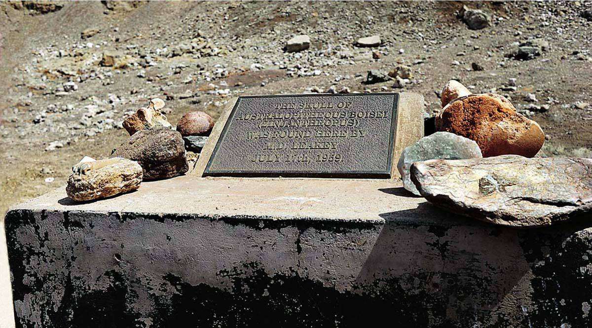 带着这些疑问,路易斯带着妻子玛丽进驻奥杜威峡谷,他们全身心投入到考古发掘中。然而,起初的进展并不尽如人意。直到1959年,玛丽才终于找到了第一块猿人化石:这是一个近乎完整的头骨和一根小腿骨,经过钾-氩法测定化石年代,这是距今约175万年的一种猿人的骨骼。这种猿人被命名为“鲍氏南方古猿”。这一发现可谓惊天动地,不仅引起了学界的广泛关注,也极大地鼓舞了路易斯夫妇,很快他们把儿子、儿媳妇也接来加入了发掘队伍。全家人齐心协力,整天拿着工具在炎炎烈日下埋头苦干,不知疲倦地挖掘。