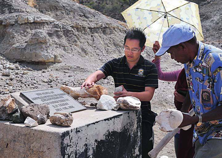 奥杜威峡谷旁有一个博物馆,展示着利基家族的照片、发掘花絮和重大发现。还有各个阶段的猿人化石、石器和古生物化石实物。古动物化石包括了已经灭绝的剑齿虎、巨鬣狗、胡狼、两种大象、白犀牛、巨长颈鹿、巨角马、鳄鱼等。我发现,奥杜威古人类遗迹的形成,和周边的火山运动有很大的关系。不同时代喷发的火山灰落在地面,累积形成了五种颜色不同的土壤层级,每个层级中保存着人类及各种古生物的进化密码。在过去的数百万年中,奥杜威经历了多次火山喷发和地壳变化。曾经大面积的湖水干涸了,森林消失了,我们的祖先不得不改变生活方式,适应严酷的自然环境。直到大约17000年前,智人出现了,脑容量增加为1400立方厘米,成为现代人。