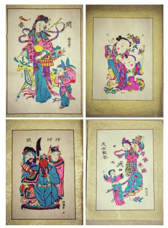 〔4〕明朝商业的繁盛,市民生活的多姿多彩,扩展了年画的题材。最为重要的是,明代刻印技术发展水平很高,雕版套色也更为成熟,能够印刷出多种颜色。书籍刻印在这一时期规模空前,书商喜用插图,市场需求倒逼印刷技术升级。这种现象正印证了经济学中的供需原理。刻印技术提高,降低了印刷成本,普通人家因此能负担得起,最终使得年画发展势头更甚,也与传统习俗更加密不可分。这一时期产生了一批颇具名气的木版年画。江苏桃花坞年画、山东杨家埠年画、天津杨柳青年画都诞生于明朝中叶到明末这段时期。
