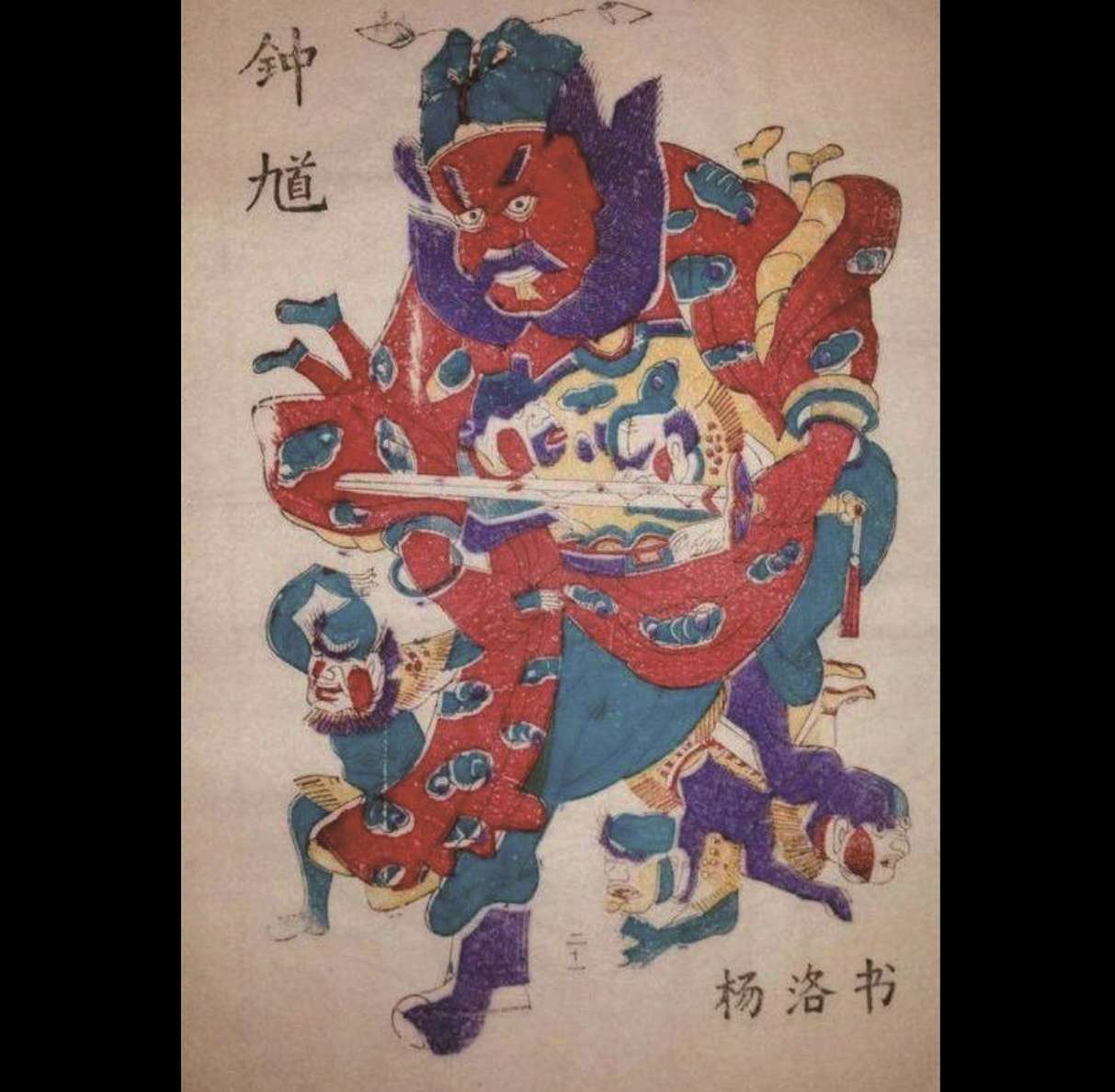 〔2〕在唐代,门神不再只有神荼、郁垒,捉鬼大师钟馗也加入行列。至此,新年钉桃符展现的驱邪避凶、吉祥安康之意已经清晰可见,这正是后世年画最为核心的寓意。