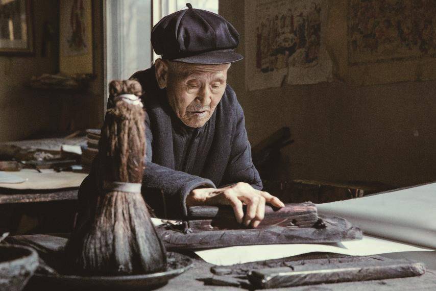 〔14〕杨洛书虽已年过九旬,但却和年轻人一样神采奕奕,每天在堆满年画和雕版的作坊内伏案创作。一把刻刀,一块雕版,下刀苍劲有力、入木三分,这样的场景早已融入杨洛书的人生。老骥伏枥,志在千里,人到暮年,壮心不已,这正是杨洛书老人的真实写照。