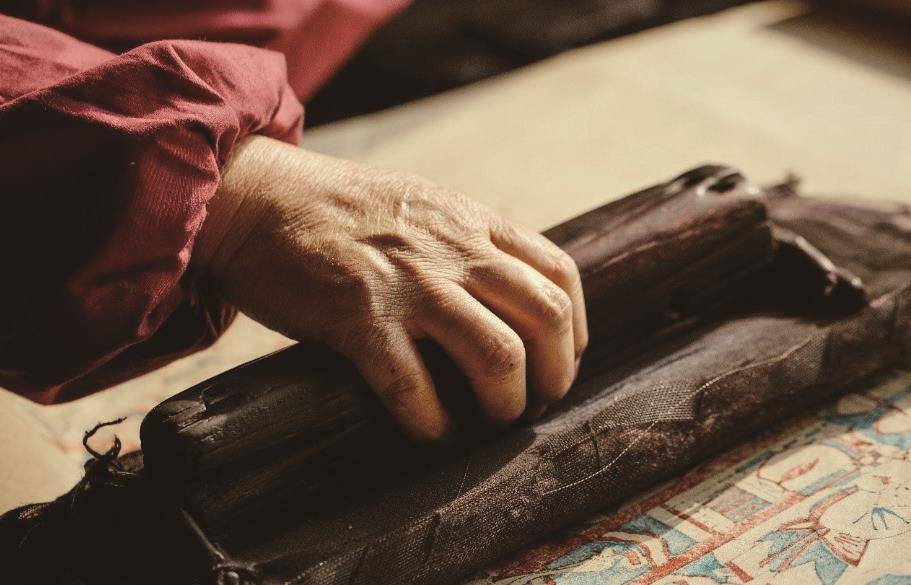 〔15〕雕版是年画的生命,一张张白纸压印在雕版上,有了独一无二的印记。同一块雕版生产出的成品虽模样相同,但细微处总有些差异,这正是手工为人造之物带去的灵魂。