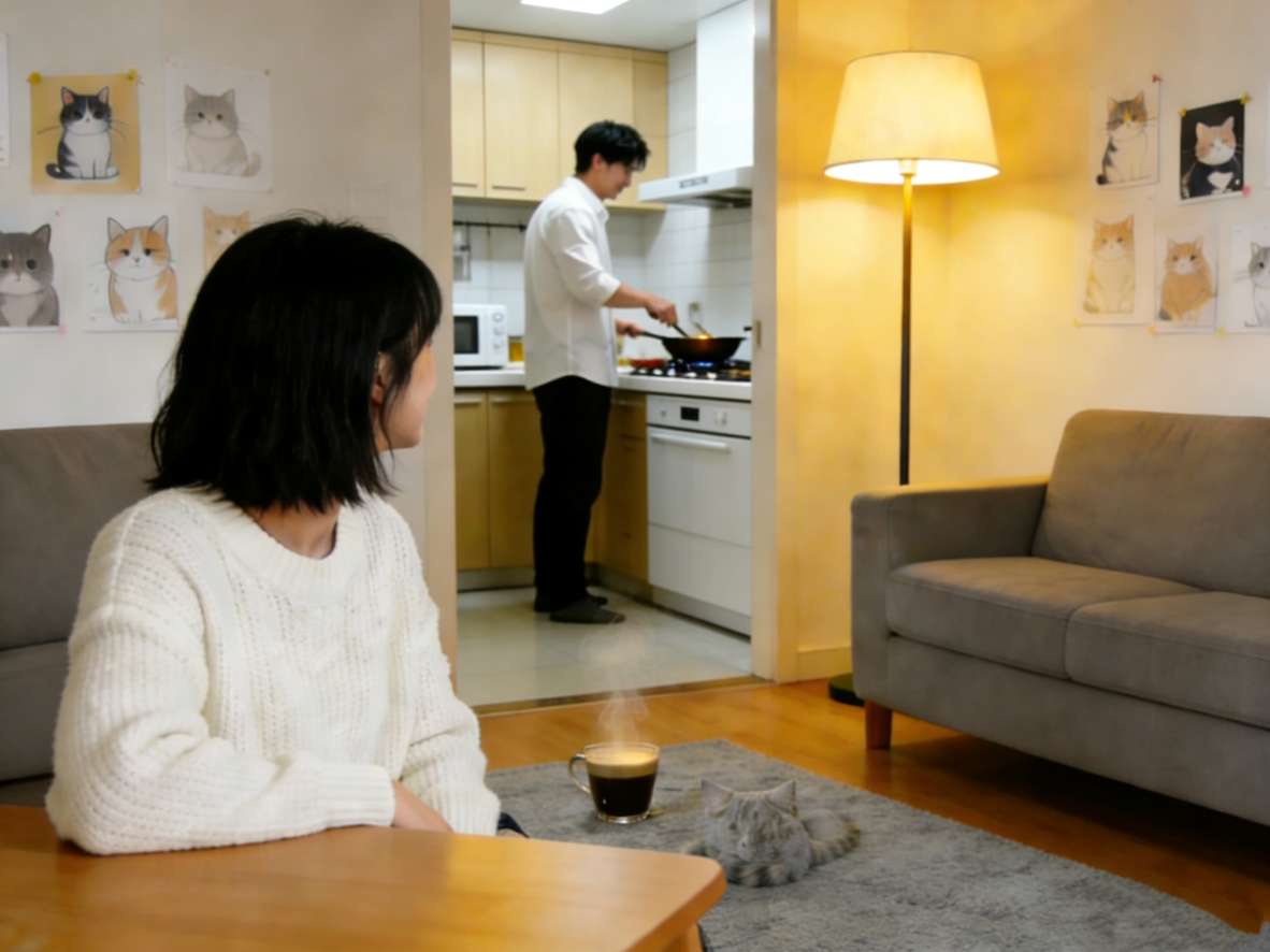 顾星然:(微笑)以前一个人住,慢慢就学会做饭了。对了,拿铁今天已经完全好了,我们一会儿带它们去楼下花园散散步吧,猫咪也需要晒晒太阳。