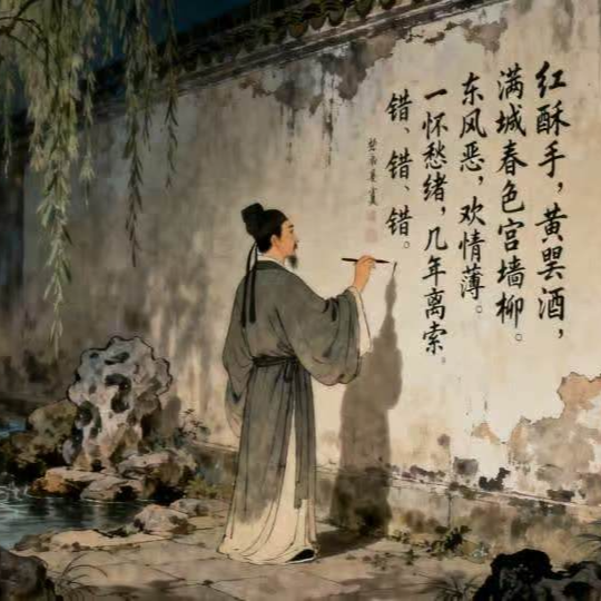 陆游: 跪地婉妹……婉妹……“山盟虽在,锦书难托”……“怕人寻问,咽泪装欢”……我们……我们终究是错过了……一生一世……都错过了……