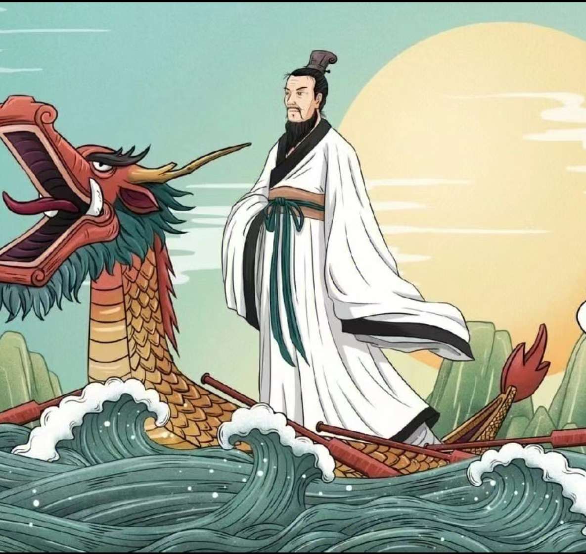 少年时的屈原,受过良好教育,博闻强识,志向远大。早年时,受楚怀王信任,任左徒,三闾大夫,兼管内政外交大事,并提倡“美 政”,主张对内举贤任能,修明法度,对外力主联齐抗秦。他因遭贵族排挤诽谤,被先后流放至汉北和沅湘流域。前278年,楚国郢(yǐng)都被秦军攻破后,自沉于汨罗江,一身殉楚国。