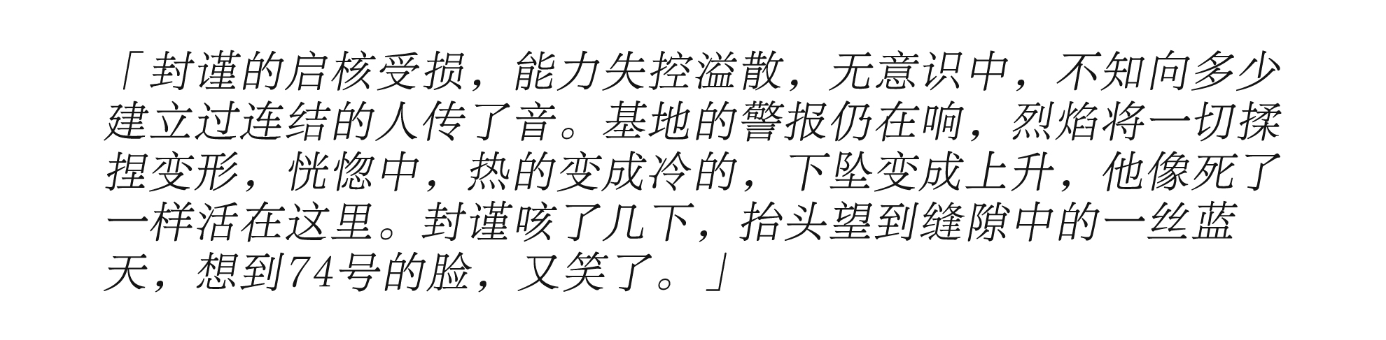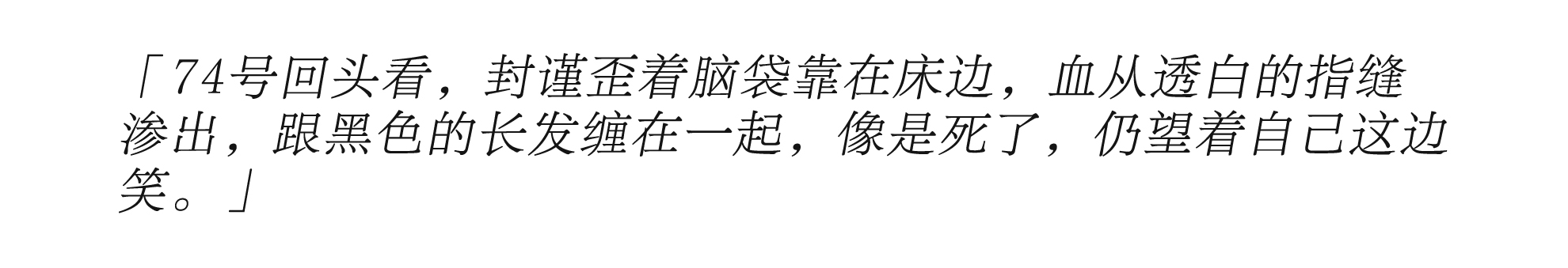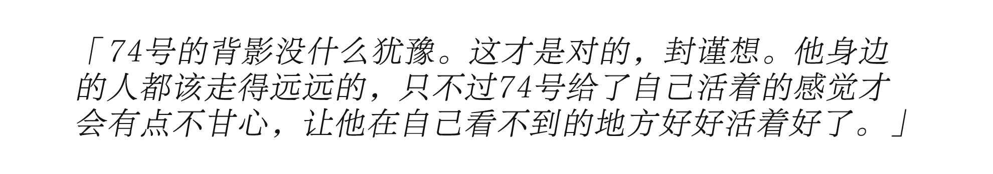封谨:(扭曲的一切中 仅剩的眼睛里 74号的脸十分清晰 迷惑)你为什么没走。