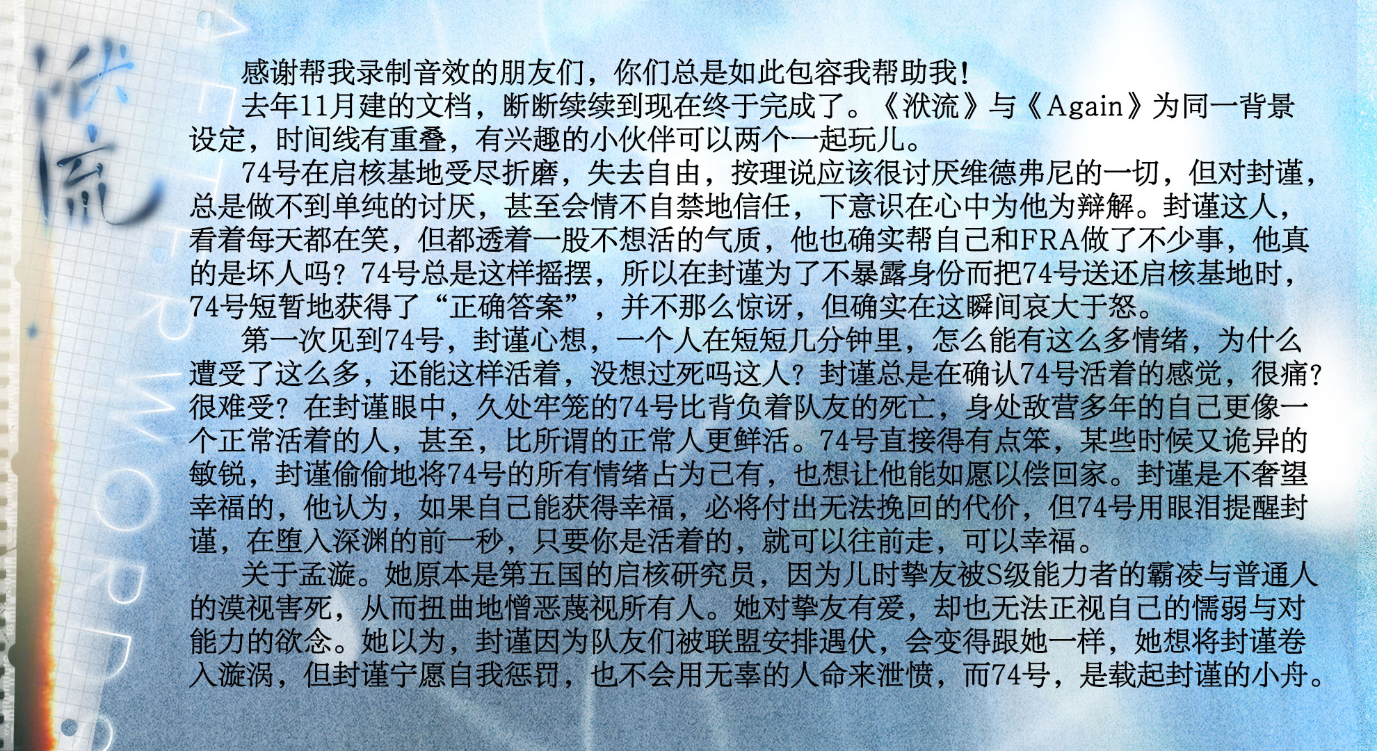感谢帮我录干音的鼠鼠、晚意、大曲、青鱼、七月、伊也、殉尘、暮星宸。