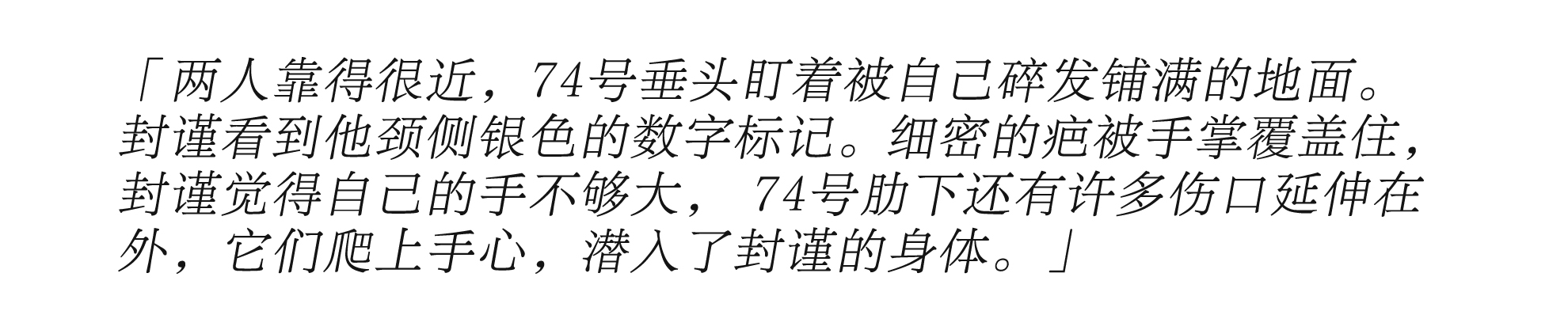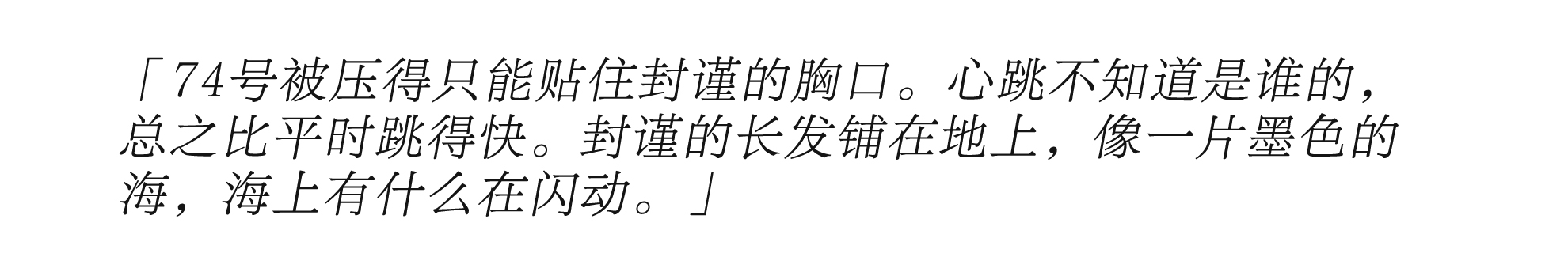 封谨:(凑近74号的脖颈)第一句话,不是“你是谁”或者“放开我”。应该是“谢谢你”。