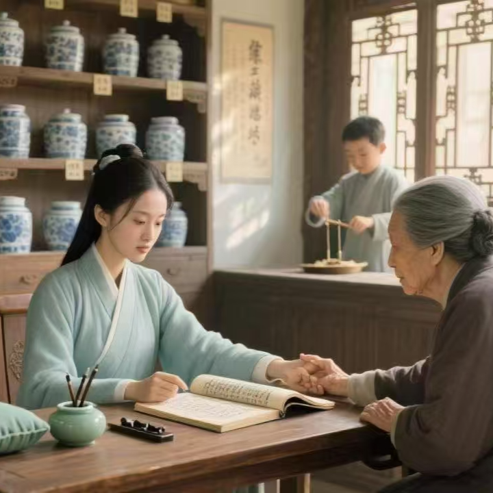 望闻问切,每一步都慢,每一步都解释给茯苓听。