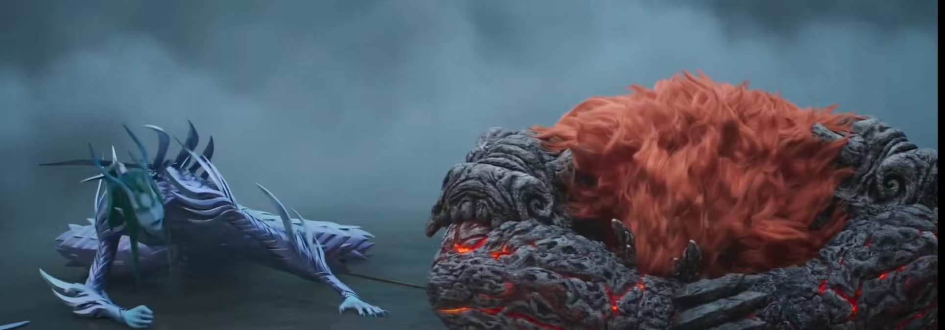 敖丙化身为龙与哪吒合力制服无量仙翁