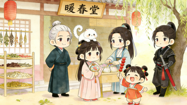 沈砚书:(从柳树下走来,手里拿着书卷,温文尔雅)各位好,我是沈砚书,住在隔壁书院。我常来暖春堂…… 嗯,主要是来教软软写字,顺便…… 蹭点师父的药茶。软软写的字虽然歪歪扭扭,但很可爱。