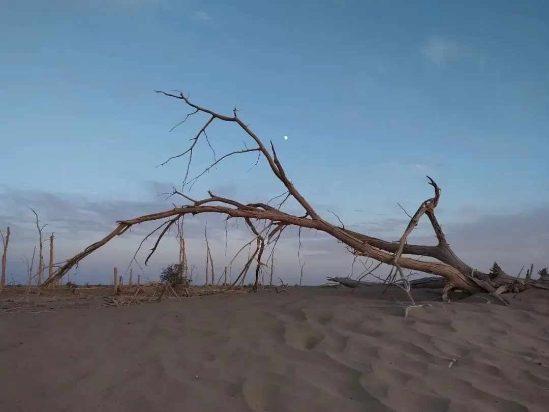 塔克拉玛干沙漠中生长的胡杨。8月的塔克拉玛干沙漠,沙尘暴总是三天一小刮、五天一大刮,37℃的高温天,看到沙尘暴如排山倒海般过来,从下而上淹没井架子。而这期间,南海胜、韩基胜都在能见度不足200米的井场上坚守着。