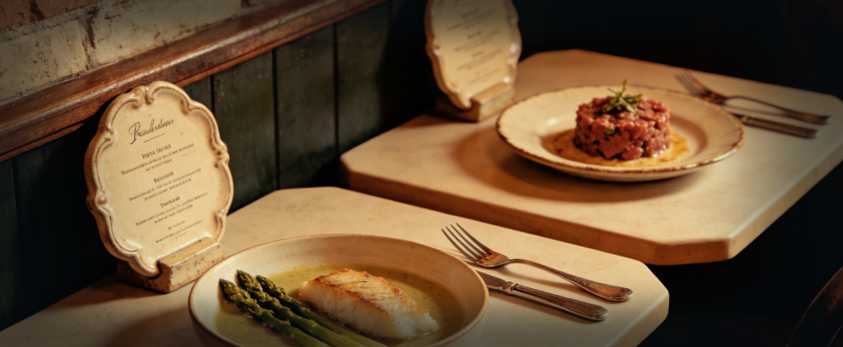 脚步声起,他们被引到靠墙的两张小桌,相邻但不相连。菜单印在陶瓷板上,每道菜名后都标注“单人份”,坐下入3:41