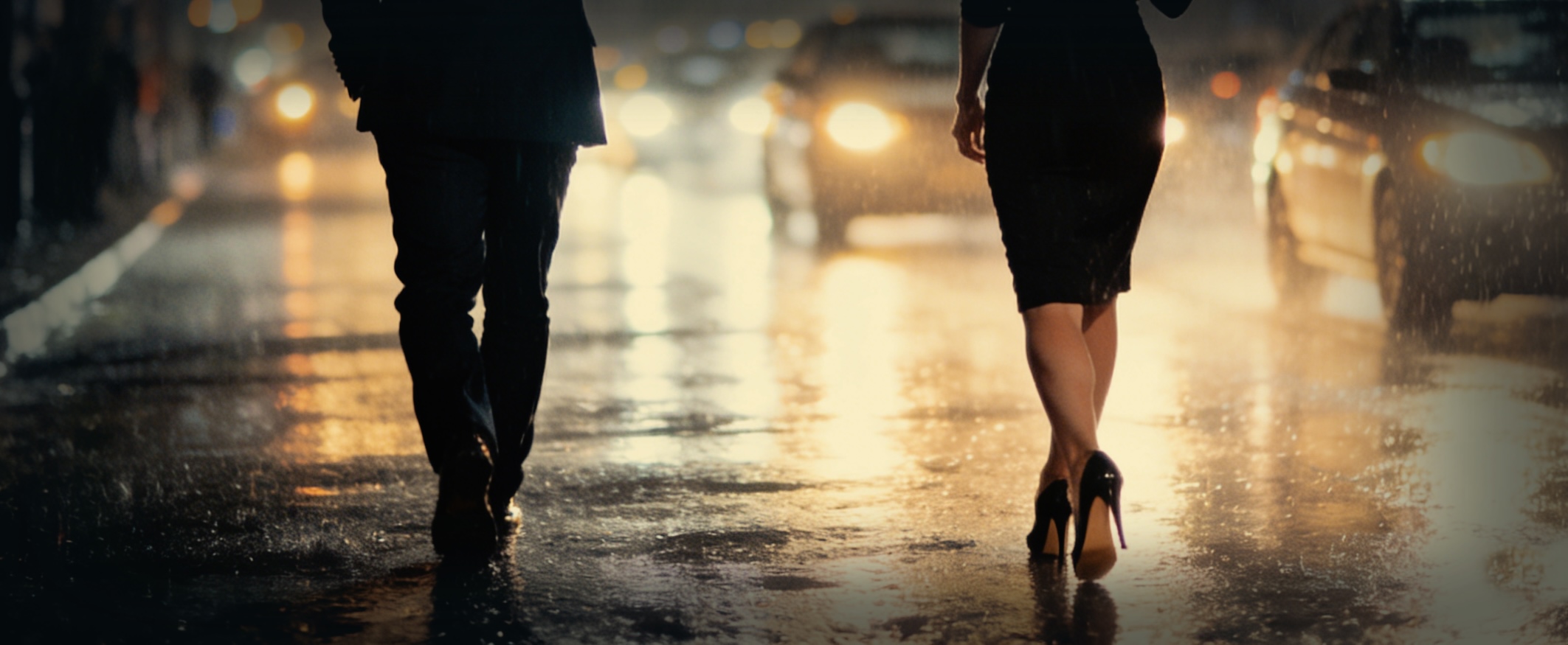 (他们走到窗边,雨更大了。街灯在水洼里碎成金箔1:38)