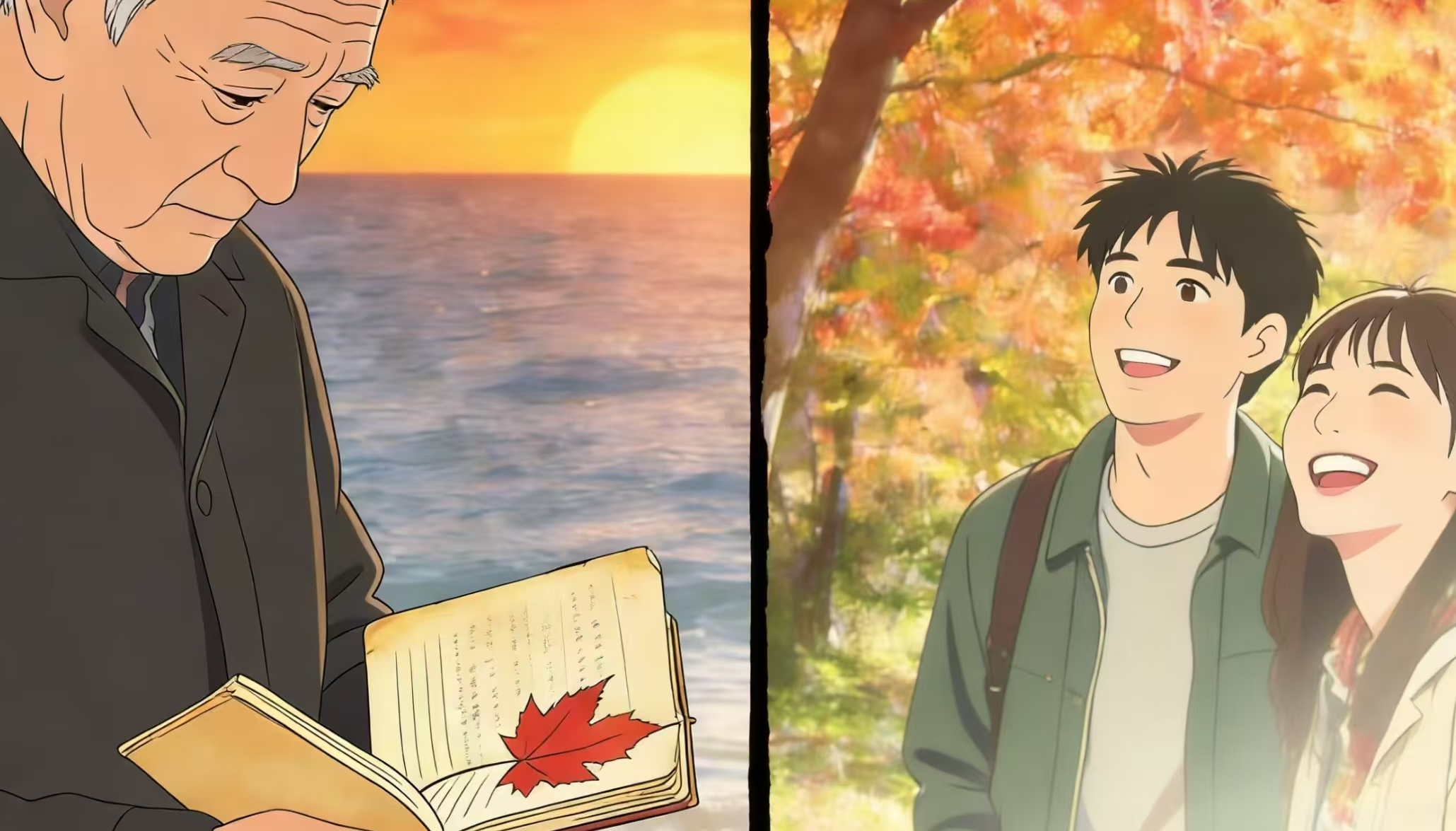 老人的日记本里有着一枚已经半个世纪了却竟然如火依旧的枫叶,他时常在翻开日记本时看着它发呆,也许是想起了那枚枫叶的故乡,也许想起了送枫叶的故人。