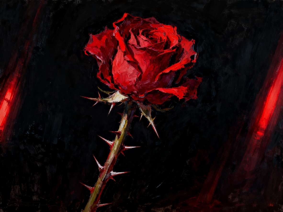 八:那如果…我偏要连刺一起握紧呢? ( 脚步声靠近,衣物摩挲) 你看,血珠渗出来了… 现在这朵玫瑰,算不算是我的了?
