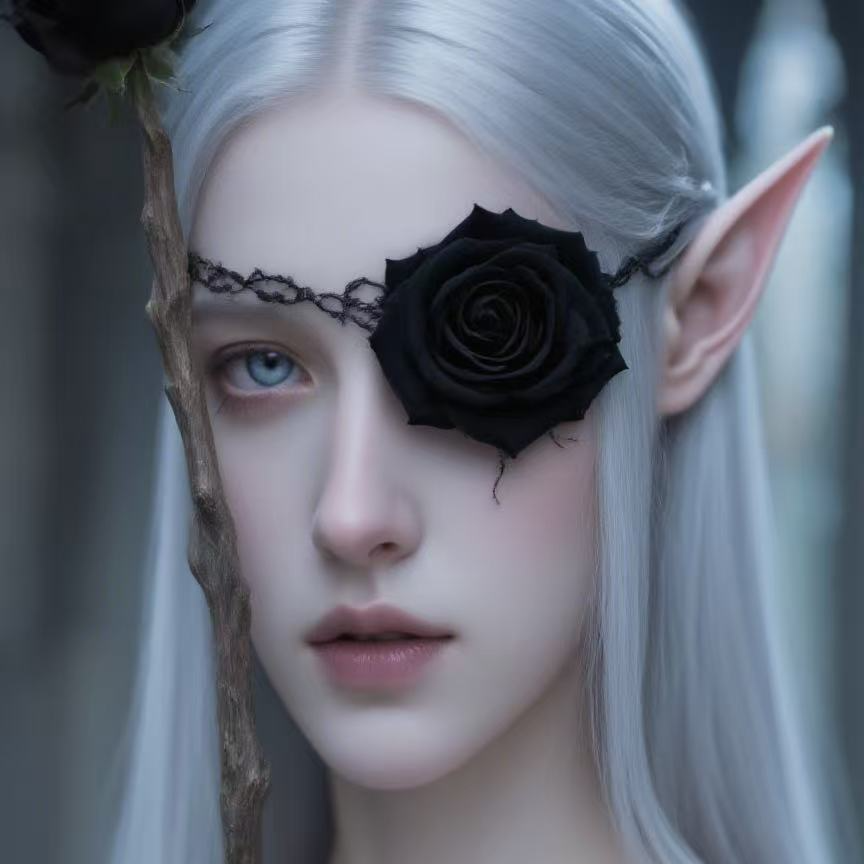 (她展开手掌,露出一颗嵌在发黑蔷薇中的蓝宝石义眼,血迹未干,银链缠绕。)