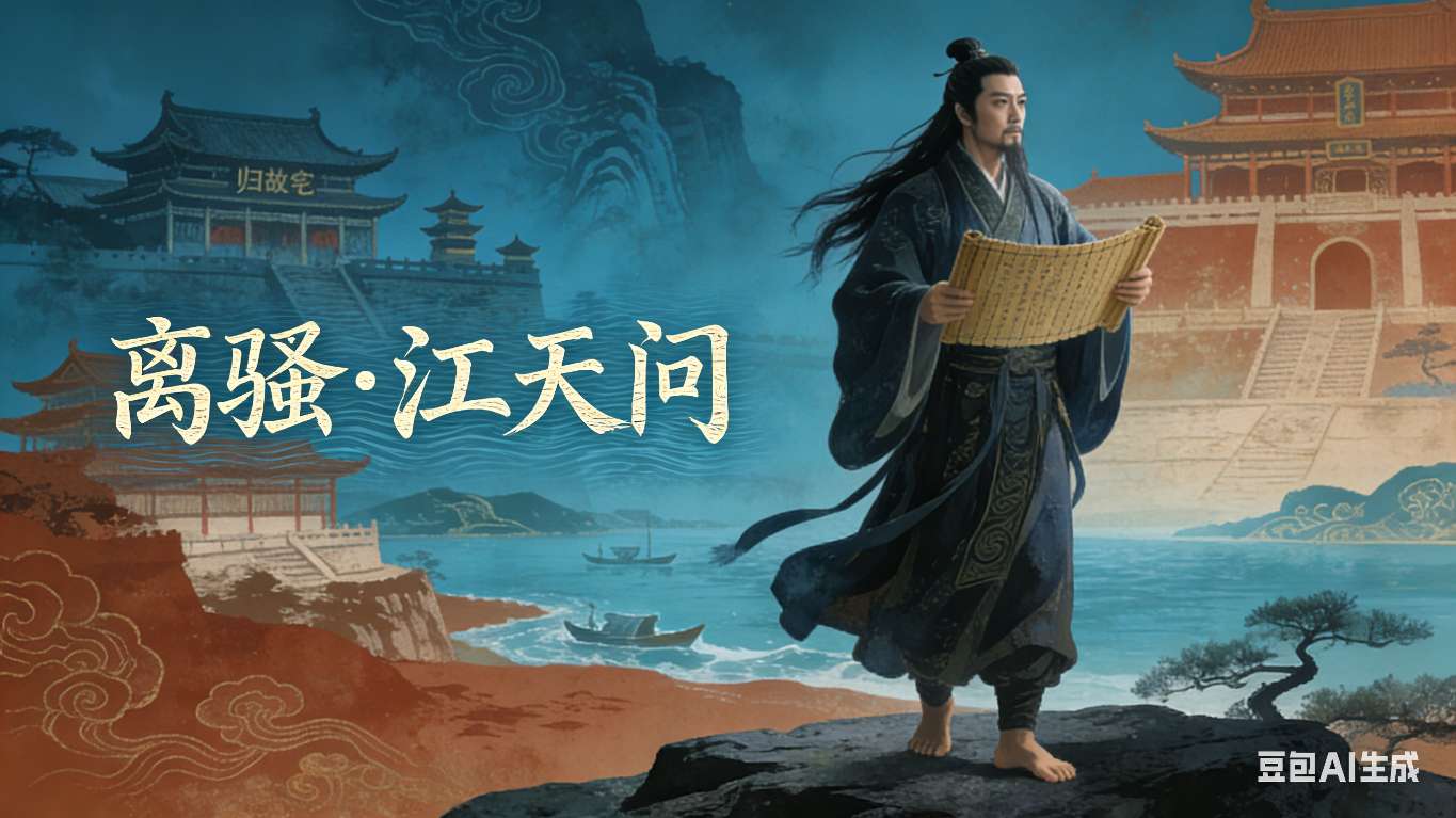 如今,我立在汨罗江畔,江风猎猎,衣袂翻飞。身后是秦兵的烽烟,眼前是奔腾的江水。可我心中,依旧是郢都的章华台,是云梦泽的芳草,是百姓的笑靥。我曾在梦中回到秭归故宅,回到章华台的朝堂,回到云梦泽的船头。我曾在梦中见东皇太一驾云而来,见湘君湘夫人鼓瑟而歌,见云中君披霞而行。他们问我:“正则,你悔否?”我答:“吾不悔。”我知我必死,可我不惧。我曾鲜衣怒马,曾壮志凌云,曾国破家亡,可我从未后悔。我曾在流放中写下《离骚》,写下《天问》,写下《九章》。我要让后人知道,在楚国末年,有这样一个臣子,他用生命追问天地,用热血书写忠诚。我问过天——“遂古之初,谁传道之?上下未形,何由考之?”;我问过地——“昆仑县圃,其尻安在?增城九重,其高几里?”;我问过命——“天命反侧,何罚何佑?齐桓九合,卒然身杀?”。这天地间的大道,这人世间的公理,我虽未寻得答案,却以心为炬,照亮了求索的路。
