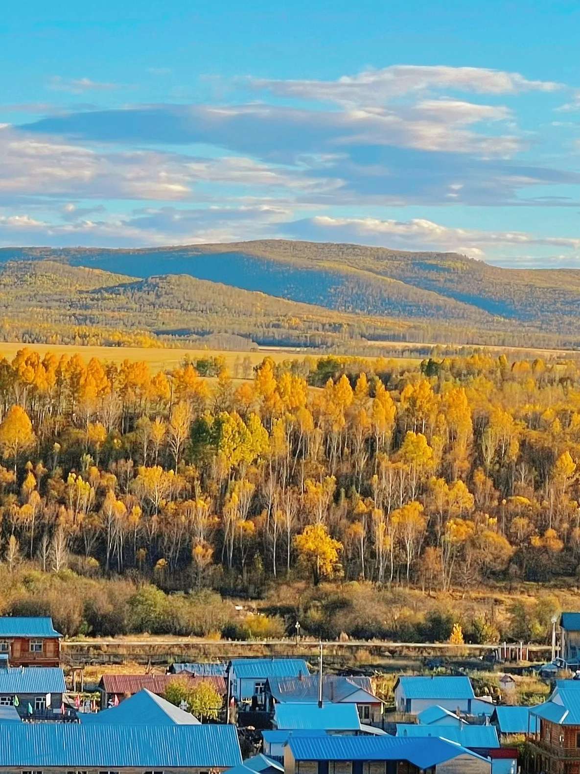 太阳冉冉升起,炊烟也起来了,阳光被薄雾滤过,柔美地流泻了一地金色。依稀能看到身影绰绰的人们,已经有村民开始放牧牛马,阳光给这些人儿牛儿马儿镶上了一道金边。许多院落,已经开始了挤牛奶的工作,芬芳甜美的气息,便四处流淌在这美丽的村庄。除了晨景,临江屯的落日夕照也是值得品味的。可以就在自家门前的秋千上,荡悠着你的闲暇时光,看暮色中归来的牧民和牛马。幢幢木刻楞在夕阳下投下了长长的身影,和木栅栏的影子交叠在一起,泛着温暖的光辉。