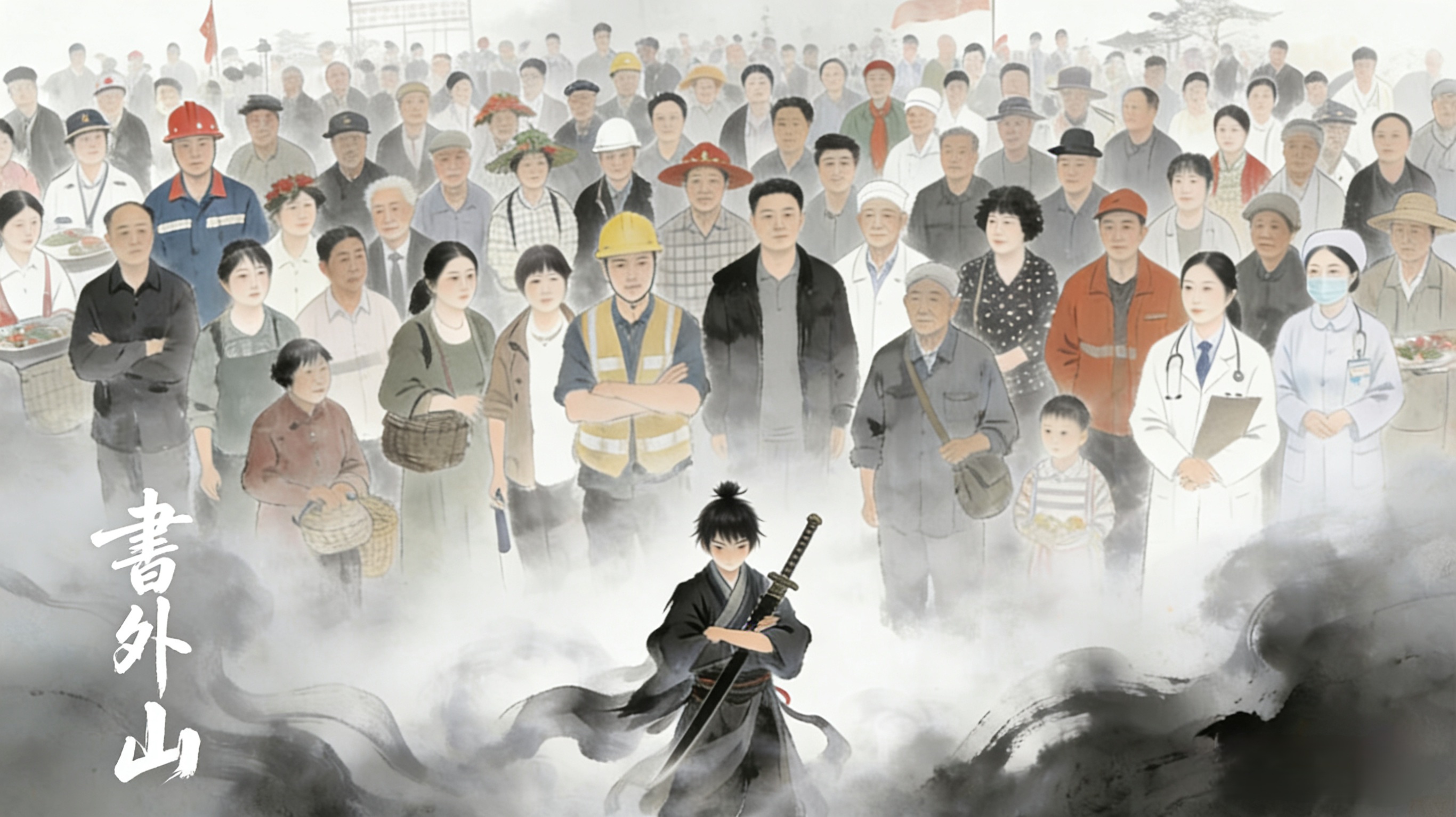 作为江湖系列的最终章,其核心概念,就是从江湖一《江湖有酒也有诗》(意气风发的江湖),再到江湖二《浩然》(浩然正气的江湖)最终总领到最后一篇《书外山》(你我所在的江湖)。内核概念二:过往世间万千文字,大抵叫世人从书外看向书中,这则书外山就叫世人从书中看向书外。
