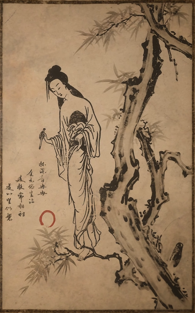 昔年,有个富家子为访道求仙,抛离了家业,躲入山中修行。因他自小由仆从伺候,不擅家事,独自生活让他吃尽了苦头。这日,他浣衣用的木盆顺水漂走了,他便坐在河边嚎啕起来,忽听树头沙沙作响,抬眼一看,竟有个年轻貌美的女子,足踏枝叶,飘摇而来。