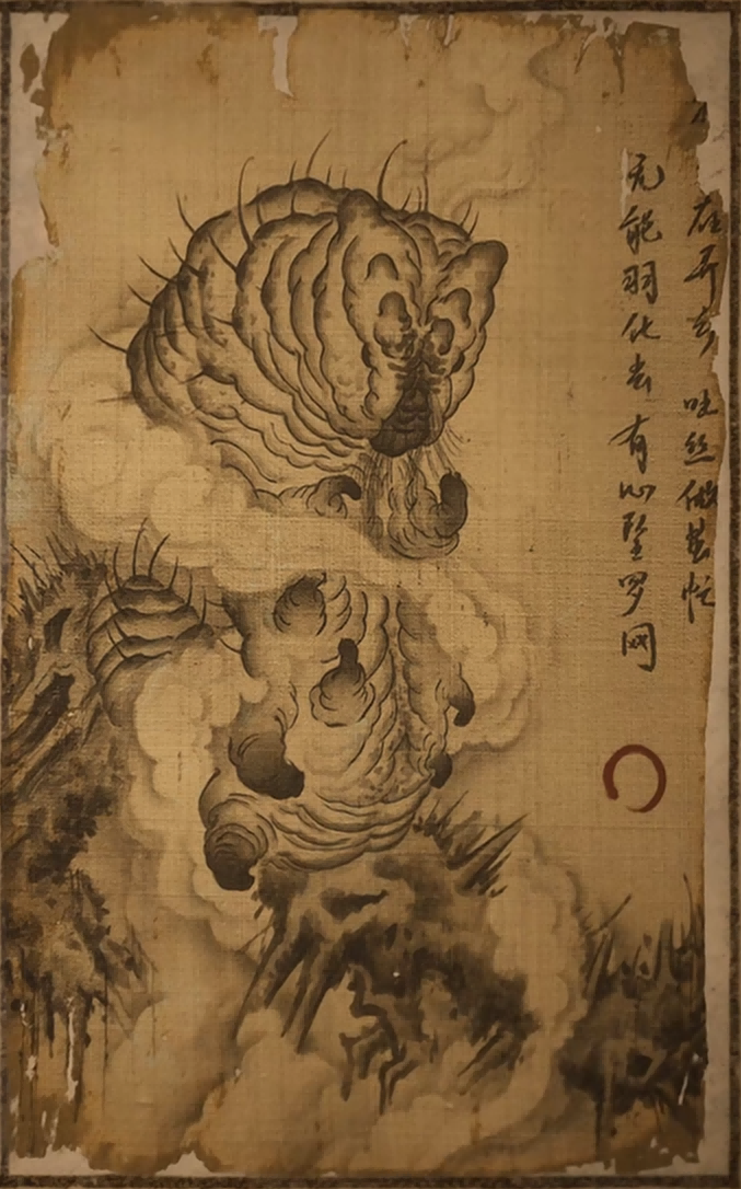 织户跌跌撞撞地奔过去,瞧见那光柱竟是无数垂落的丝线而成,有两条巨大的蚕虫,将垂丝做成虫茧来,吊在晒布架上。那些虫茧向外伸出带钩的腿足,钩住丝线并将一柄玉梭互相传递,织出华美的布匹。织户分不清是真是幻,他一心只记得冲向梭子,认为拥有它,便能拥有这般术法。不想,大茧们舞起腿足,比比划划地打来,锋利的勾刺几下就将织户捅穿了。将死之际,织户看见大蚕朝他爬来。它们将他驮到光柱中,将他包成了莹润的虫茧。