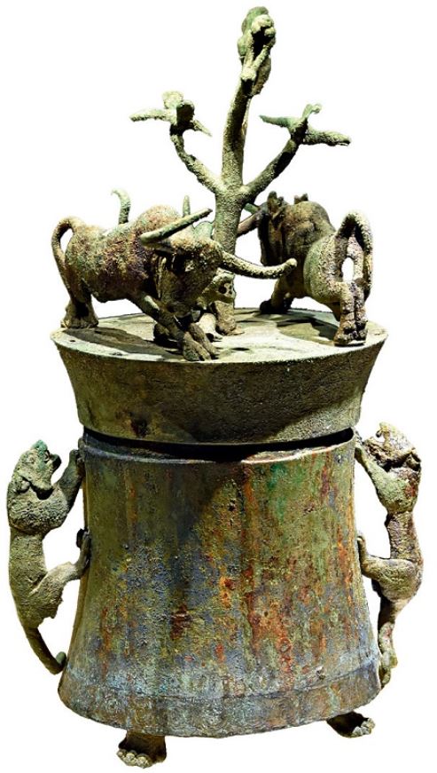 ▲西汉虎牛搏斗贮贝器