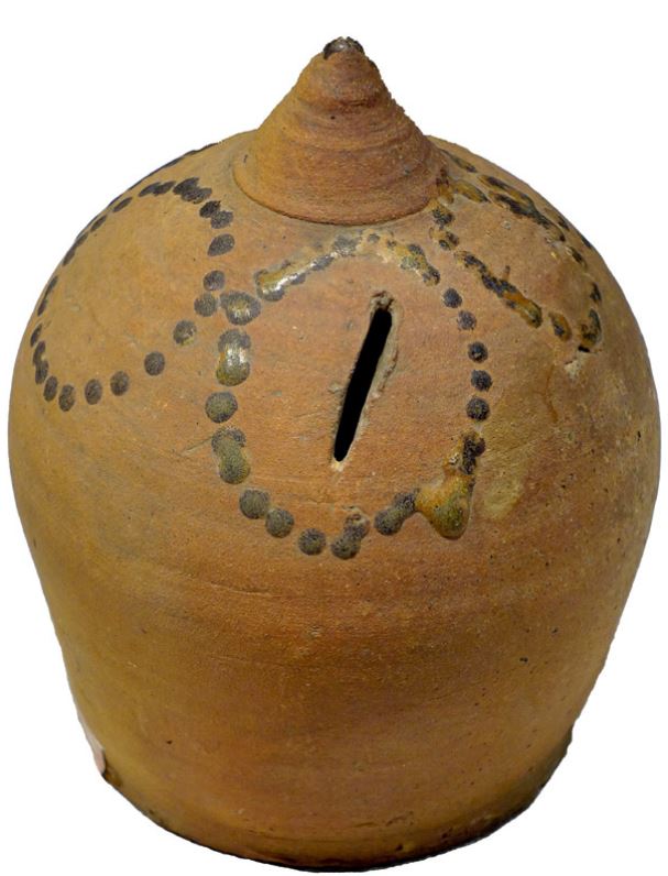 ▲唐褐彩圆圈纹瓷扑满