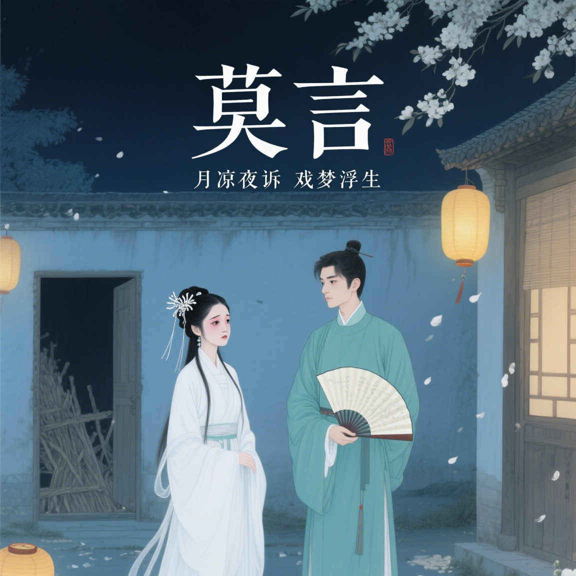 (月色洒在戏台上,微风扫过悬挂的灯笼,寂静中偶有虫鸣)