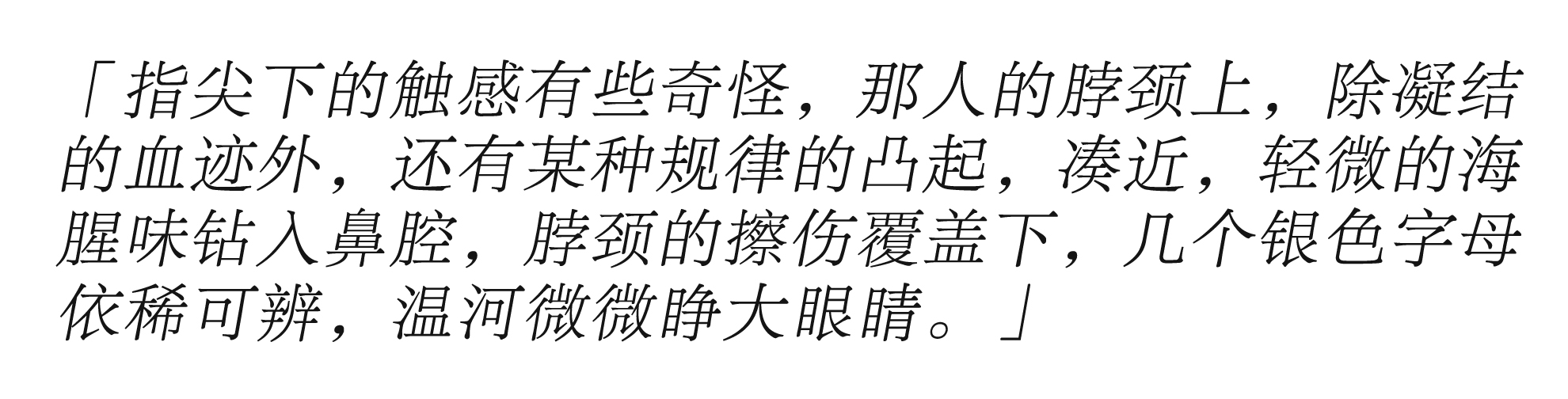 温河:(os)不会说话吗?(关)为什么在脖子上刻字呢?L,I,N,是你的名字吗?LIN?