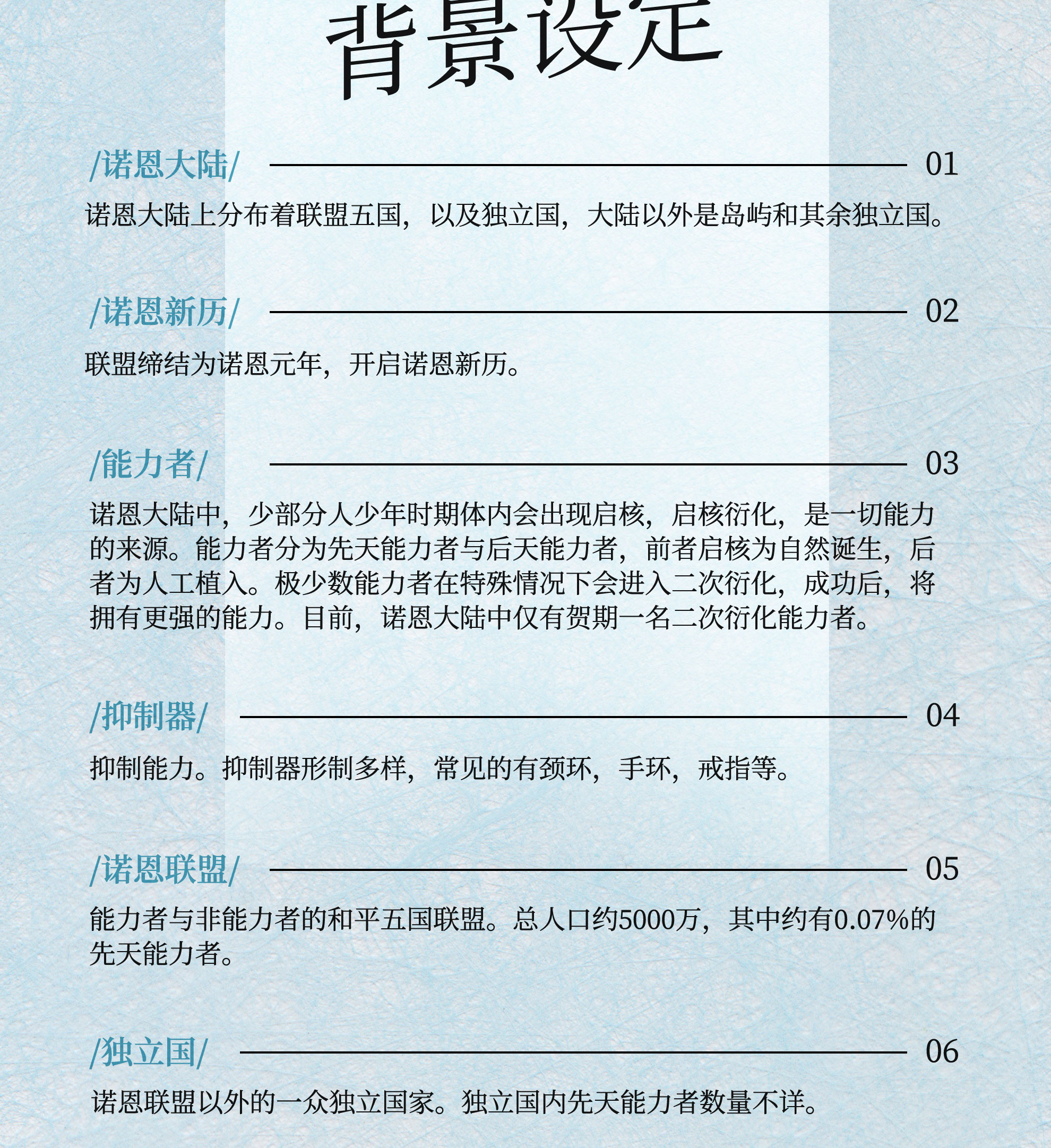 温河:(舒气 起床 os)战争结束三年,孟漩死亡,维德弗尼瓦解,第五国回归诺恩联盟,独立国中,大家也都在努力尝试恢复正常生活。跟大多数普通人一样,我不了解启核还有能力者,不知道为什么会爆发战争,仍旧被裹挟进混乱中。上位者轻翻手掌,阶下人永陷泥潭。我只知道,七年前姐姐失踪了,而我不会放弃寻找她。