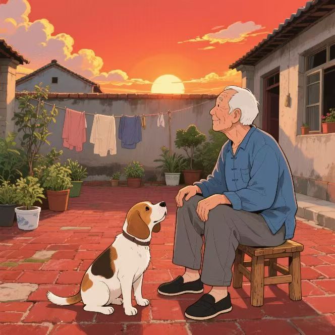 爷爷:(看了眼小狗,自言自语)妹子,你再等等,我很快就来找你了。