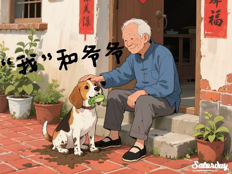 小狗:我才不傻呢,我是这个世界上最聪明的小狗!爷爷刚刚才夸过我呢🥰,我以后还要抓好多好多的青蛙给爷爷,我还要活好久好久,要和爷爷永远都在一起~~嗯~那个词叫什么来着……长…长命百岁!对!不闹要和爷爷长命百岁~ 小狗叫