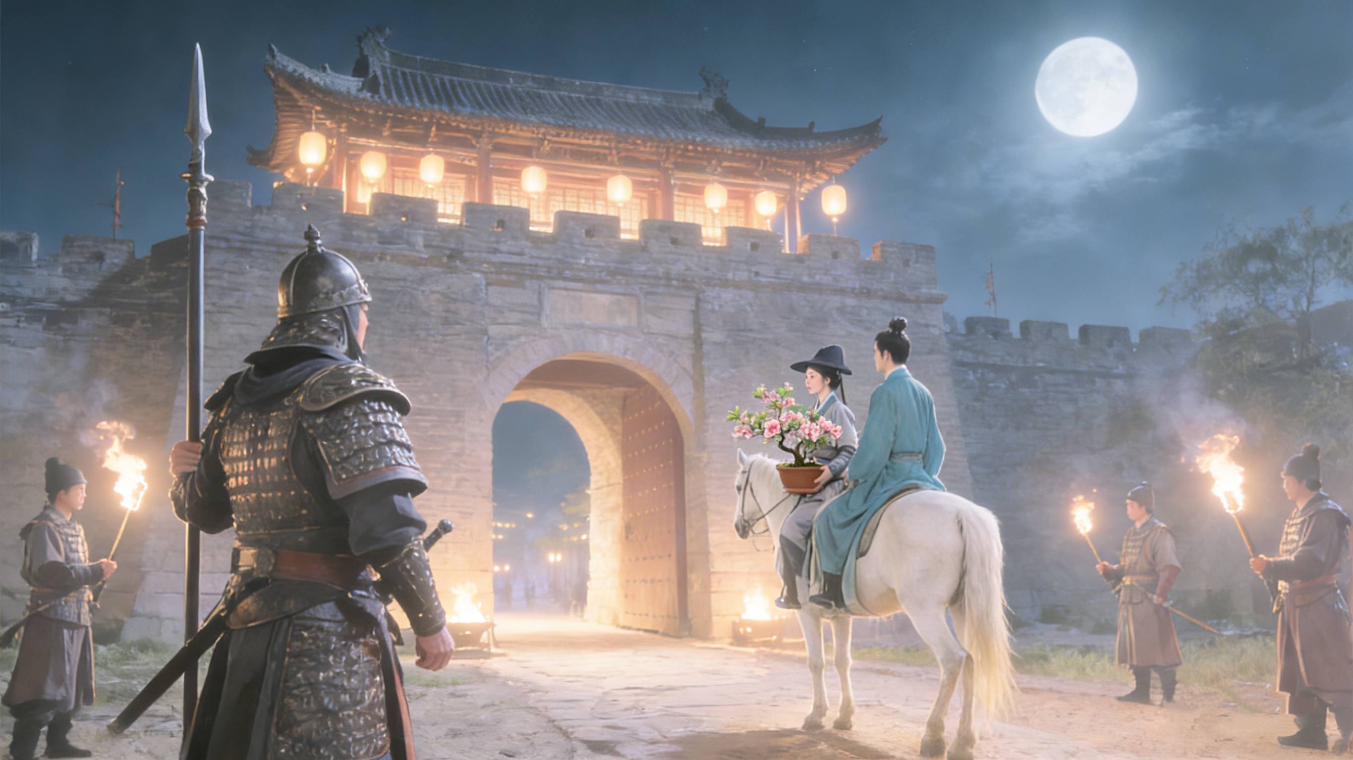 士兵:(拱手行礼,目光紧盯玉笙)敢问是哪位大人?深夜出城有何公干?这随行的小兄弟……看着面生得很!