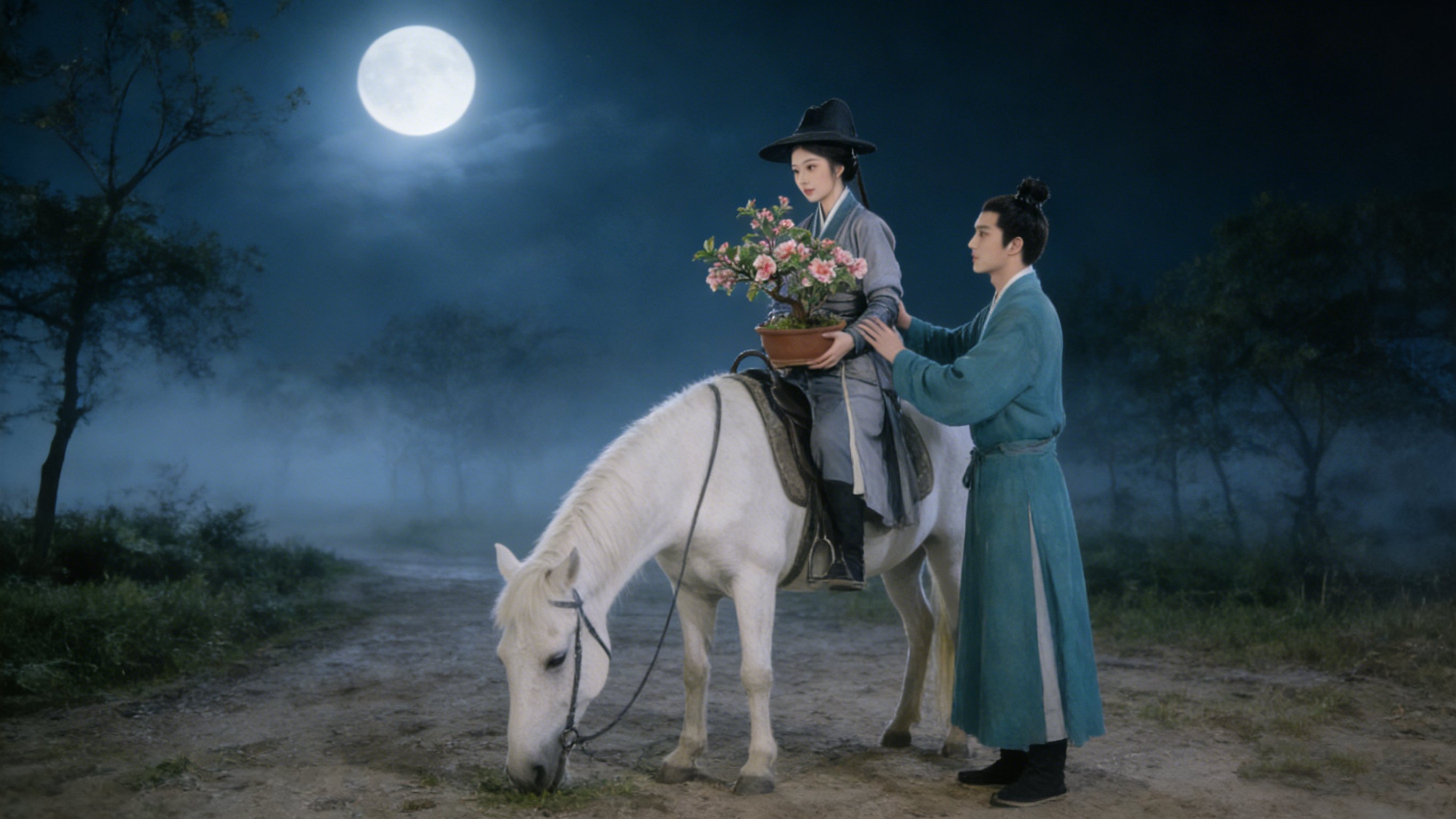 怀中的海棠苗在春风中轻轻摇曳,白马朝着江南的方向缓缓前行,消失在晨光之中……