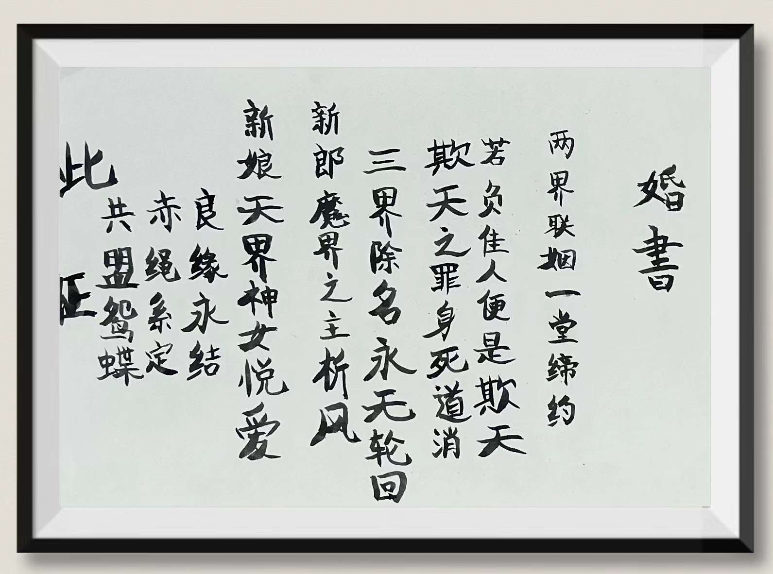 甚至无聊时给他们写了婚书,不要嫌弃字丑。