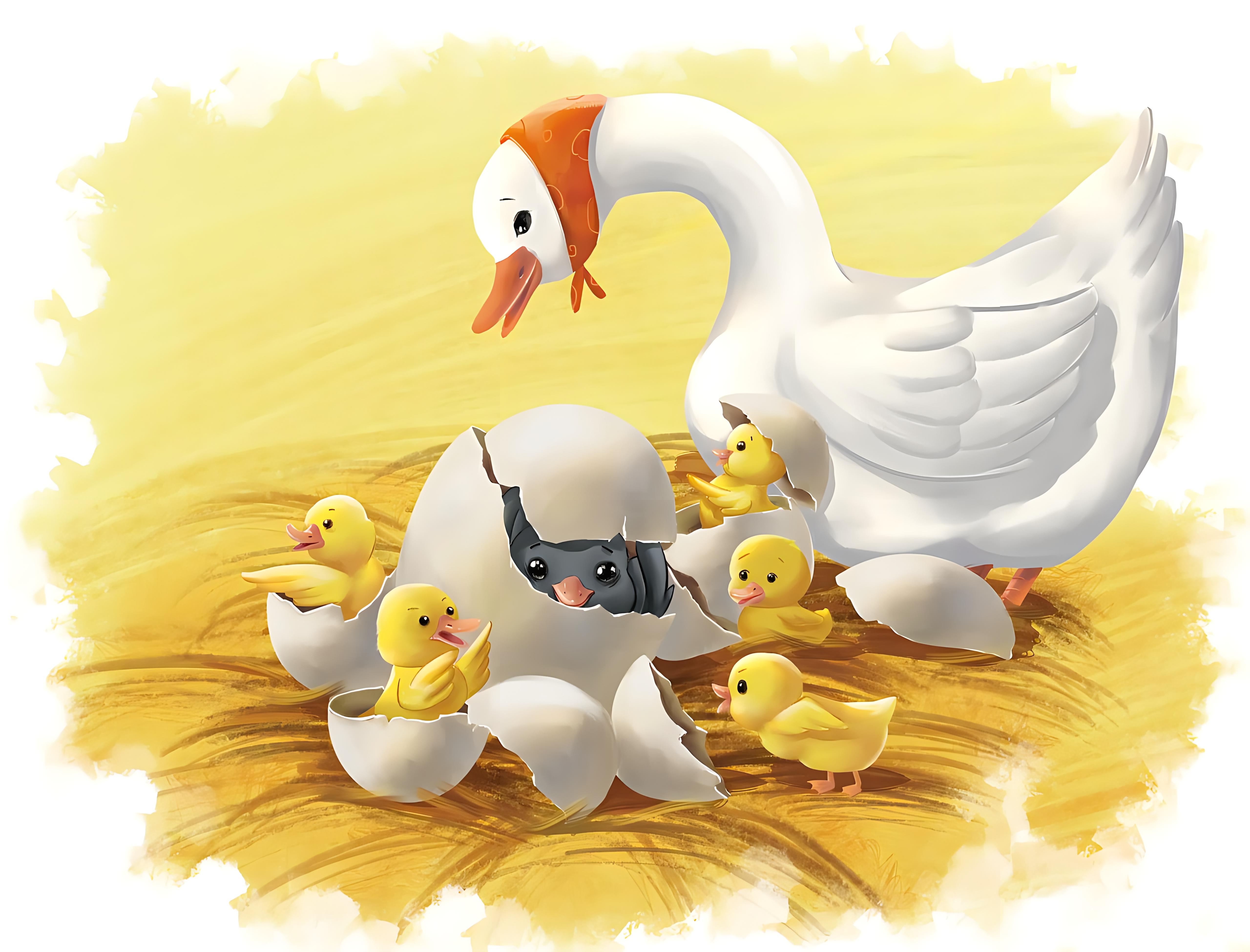 在一座风景优美的农场里有一只小鸭子,他长得非常丑,一点儿也不像他的家人。