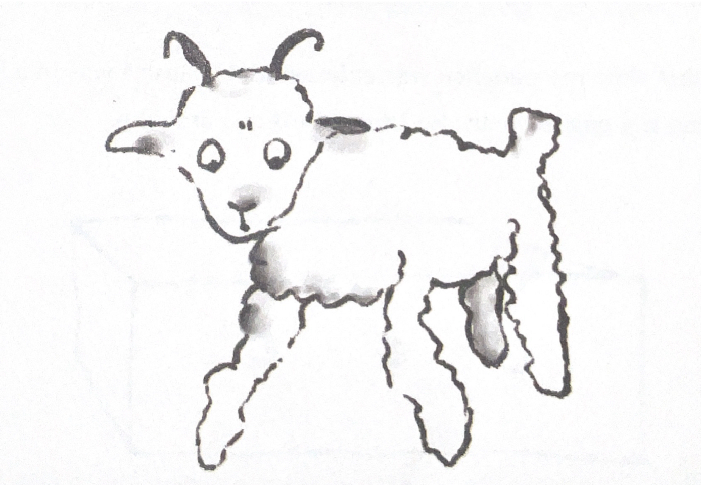 我的这位朋友温柔、宽容地笑了。他说道:“你看,这不是小羊,而是一头公羊,还有犄角呢。”于是我又重新画了一张。